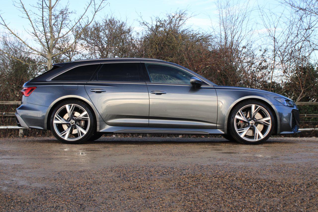 Finished in Daytona Grey pearl effect with black Valcona leather and express red stitching interior. Features include RS design pack in red, head-up display, Audi virtual cockpit plus with RS specific design, Bang & Olufsen premium sound system, 22” five V spoke trapezoid alloy wheels in grey, matt grey exterior styling package, park assist pack with park assist plus & 360-degree cameras, heated and ventilated RS sport seats with driver memory function, deluxe four zone climate control with automatic air conditioning, Audi Smartphone Interface, MMI Navigation, HD Matrix LED headlights with Audi laser light, rain sensor, cruise control, RS sport exhaust system, RS air suspension, dynamic all-wheel steering, RS steel brakes with black calipers, top speed restriction increase to 174mph, quattro with sports differential, Audi drive select with RS modes, Audi Connect, heated electric folding exterior mirrors, rear privacy glass, keyless start, ambient lighting package plus, matt brushed dark aluminium inlays, bluetooth connectivity with media streaming, DAB digital radio, Audi phone box with wireless charging, illuminated RS6 door sills, roof rails, voice control, electric tailgate, multifunctional flat bottomed alcantara steering wheel with paddleshift, automatic Tiptronic transmission plus much more standard specification. This RS6 Avant Performance is offered in excellent condition having covered just over 5000 miles from new by its 1 owner. The car comes complete with the reassurance of a remaining manufacturers warranty until July 2027. VIEWING BY APPOINTMENT ONLY.