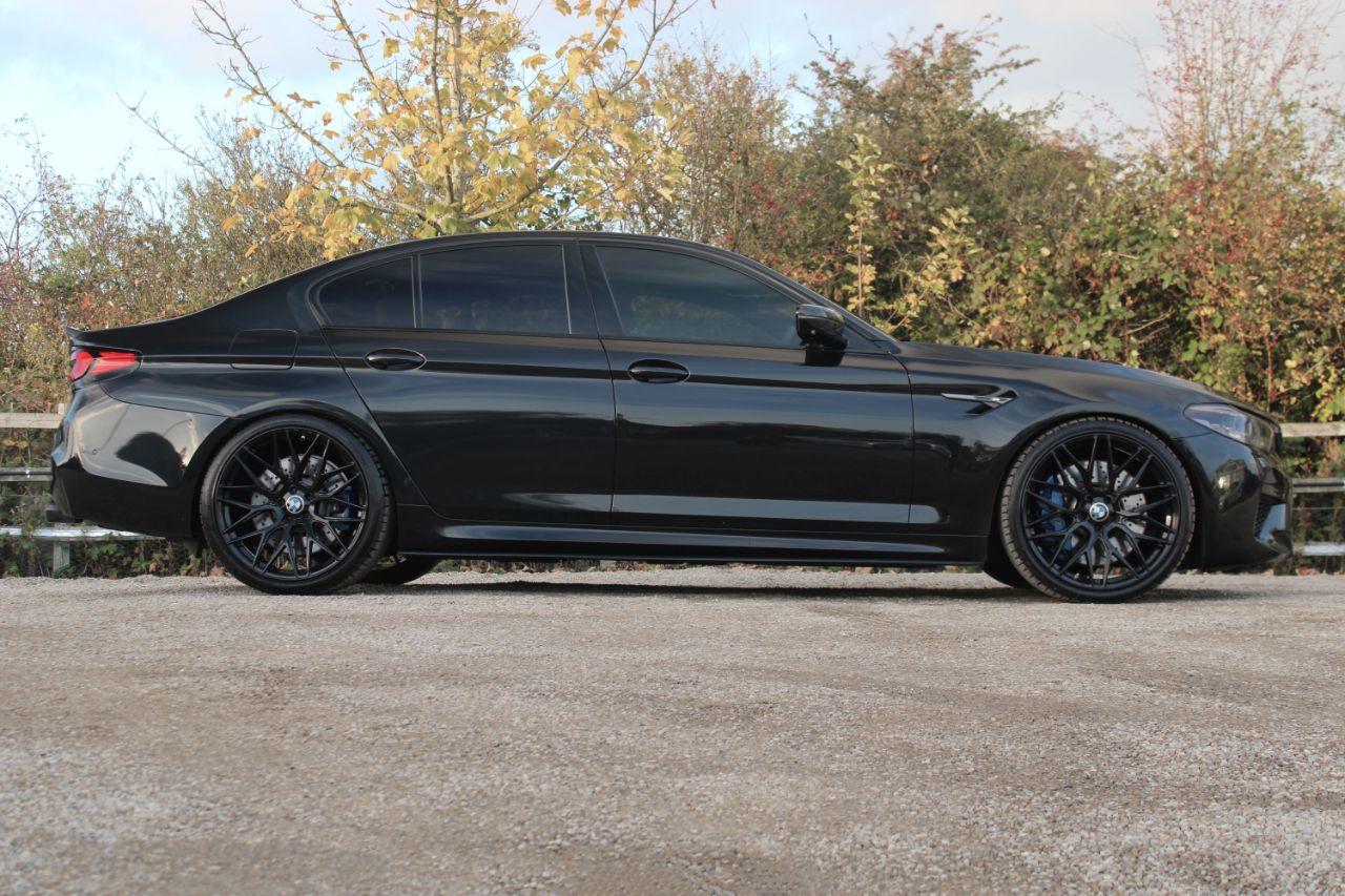Finished in Black Sapphire metallic with full black Merino leather interior. Features include driving assistant plus with active cruise control (£1470), comfort package (heated steering wheel, display key, sun protection glass, split-folding rear seats, heated front and rear seats) (£1195), M Sport exhaust system (£1100), Evolve stage 1 ECU remap performance upgrade (£1699), MSS sports adjustable front and rear ride management system (£720), MMR performance aluminium billet paddleshift set (£200), Hubcentric spacers (£200), carbon fibre roof and rear lip spoiler, upgraded LCI taillights, Apple CarPlay (£235), 21” multispoke alloy wheels in gloss black, parking assistant plus with 360-degree cameras, head-up display, professional navigation, Harman Kardon surround sound system, M multifunctional seats with memory function, digital four zone climate control with automatic air conditioning, bluetooth connectivity with media streaming, DAB digital radio, BMW Icon adaptive LED headlights with high beam assistant, rain sensor, dynamic damper control, speed limit display, BMW Connected Drive, electric folding exterior mirrors, comfort access, interior ambient lighting, wireless phone charging, aluminium carbon structure interior trim, anthracite alcantara headlining, high-gloss shadow line exterior trim, M seat belts (£260), side skirts, gesture control, voice control, electric tailgate, multifunctional leather steering wheel, automatic Steptronic transmission plus much more standard specification. This highly specified M5 has £4,260 worth of factory options and is offered in excellent condition having covered 61700 miles from new. Car comes complete with a full BMW and specialist service history consisting of the following - 16/05/2019 at 1156 miles, 11/09/2020 at 14703 miles, 26/08/2022 at 31379 miles and 09/10/2024 at 46224 miles.