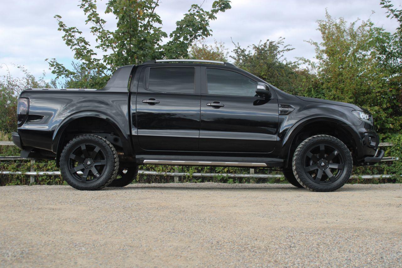 Finished in Agate Black (£600) with ebony journey grained leather interior. Features include Mountain Top lockable tonneau cover with power roller shutter and cargo area management system (£1620), trailer tow pack with tow bar (£480), Apple CarPlay and Android Auto, SYNC satellite navigation, wheel arch extensions, Steeler front bumper guard, 20” Predator XC seven spoke alloy wheels in black, front and rear park distance control with rear view camera, heated front seats with driver electric adjustment, digital dual zone climate control with automatic air conditioning, bluetooth connectivity with media streaming, DAB digital radio, aftermarket LED headlights with tinted LED taillights, rain sensor, cruise control, uplifted suspension, lane keeping aid, traffic signs, rear differential lock, heated front windscreen, electric folding exterior mirrors, privacy glass, keyless entry, ambient lighting, fixed side steps, roof rails, multi-terrain tyres, voice control, multifunctional leather steering wheel, automatic transmission plus much more standard specification. This Ranger Wildtrak has £2,700 worth of factory options and is offered in excellent condition having covered 38800 miles from new by its 1 owner. Car comes complete with a service history. Plus VAT.