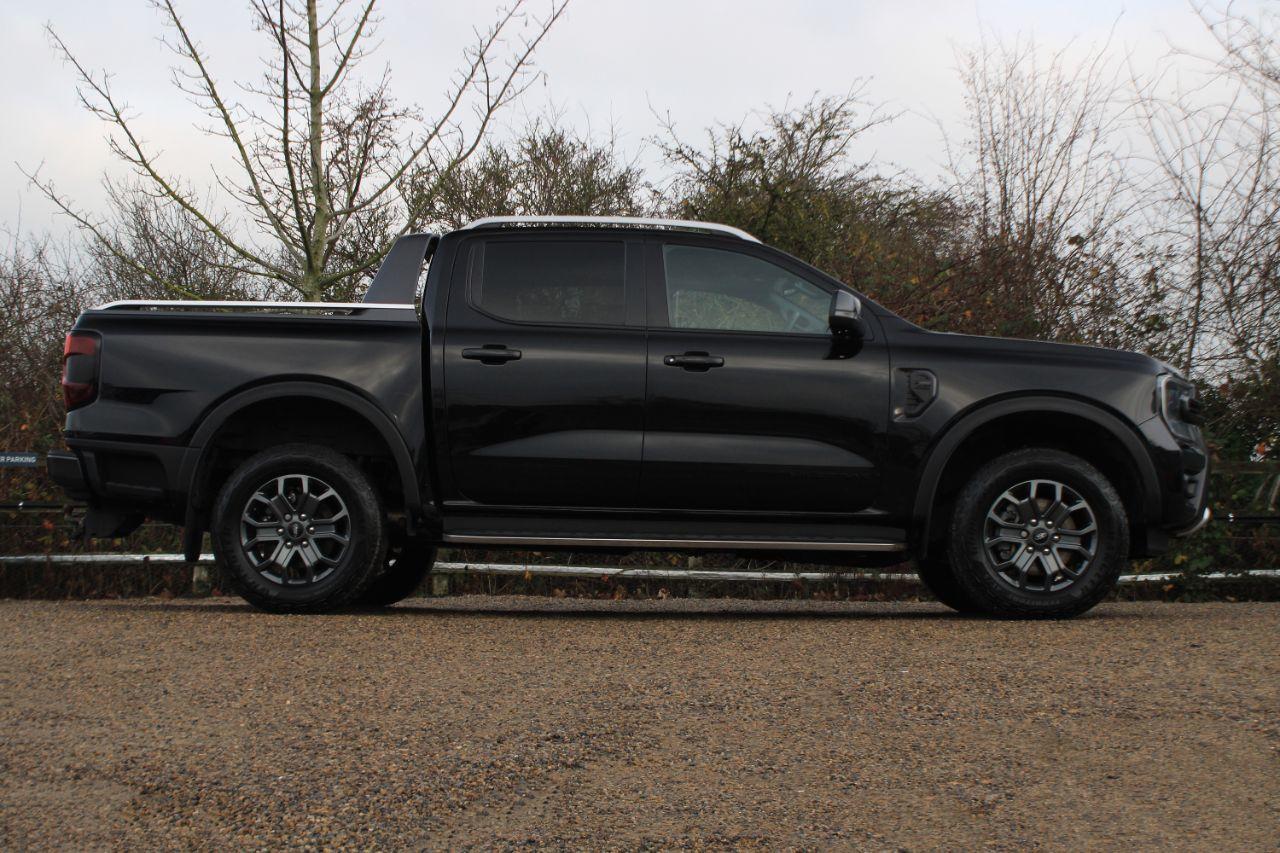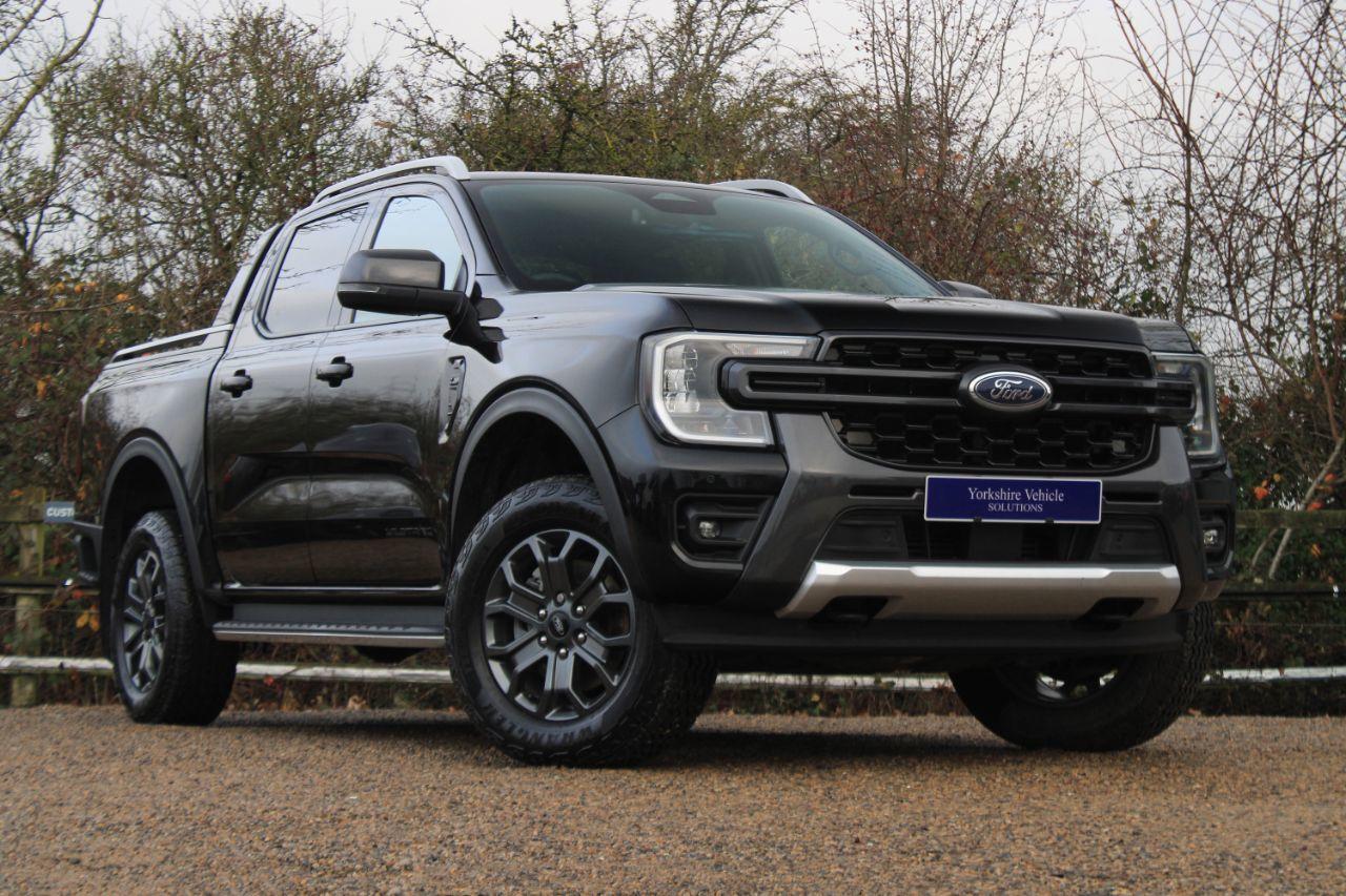 Finished in Agate Black with black micro rib embossed leather interior. Features include Apple CarPlay and Android Auto, SYNC4 satellite navigation, Mountain Top roll cover, heated steering wheel, 18” six twin spoke alloy wheels, front and rear park distance control with rear view camera, heated front seats with driver electric adjustment, digital dual zone climate control with automatic air conditioning, bluetooth connectivity with media streaming, DAB digital radio, automatic LED headlights, rain sensor, adaptive cruise control, drive modes with terrain select, electric folding exterior mirrors, rear privacy glass, keyless go, 360 zone lighting, fixed sidesteps, roof rails, fixed tow bar, voice control, multifunctional leather steering wheel, automatic transmission plus much more standard specification. This Ranger Wildtrak is offered in excellent condition having covered 61700 miles from new by its 1 owner. Car comes complete with a Ford service history consisting of the following - 17/10/2023 at 12527 miles, 03/05/2024 at 23667 miles, 28/11/2024 at 36845 miles and 14/07/2025 at 49498 miles. PLUS VAT.