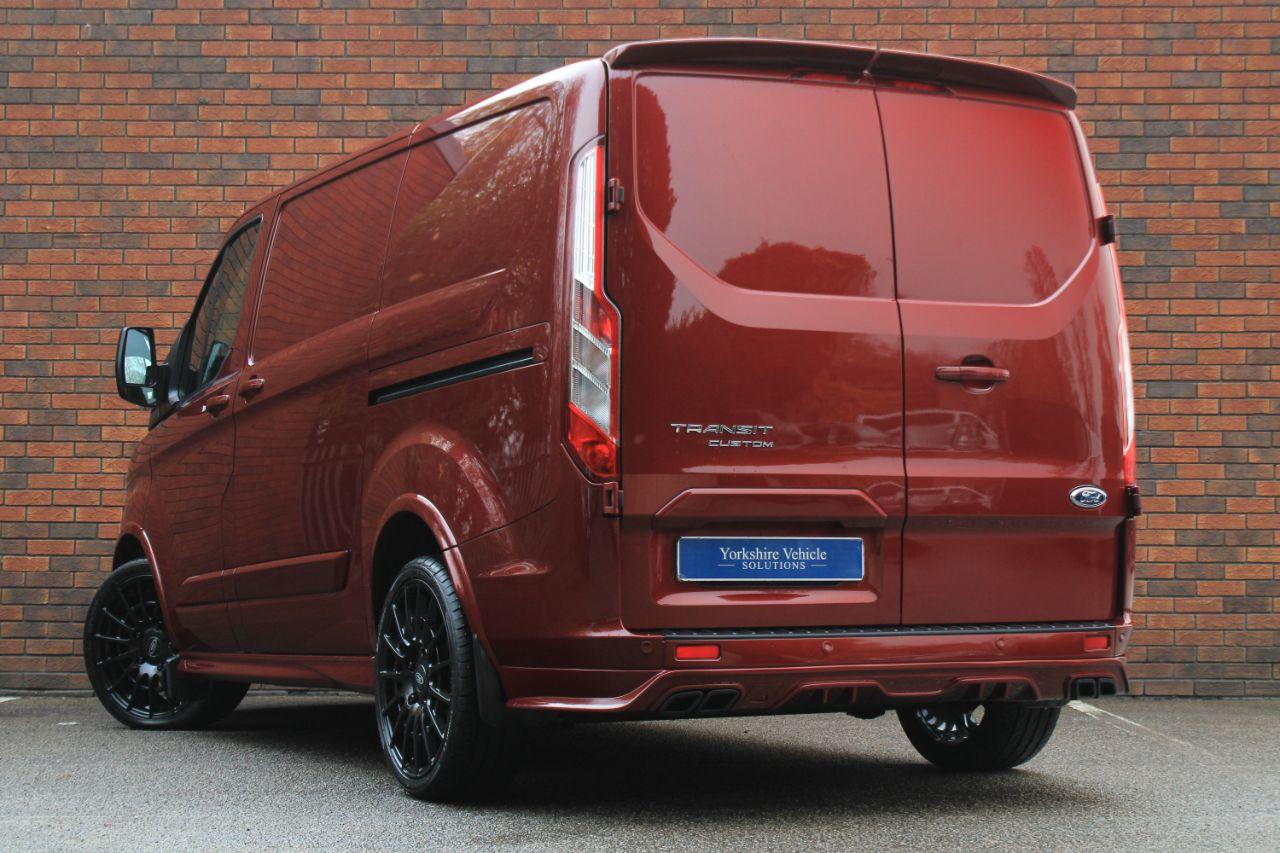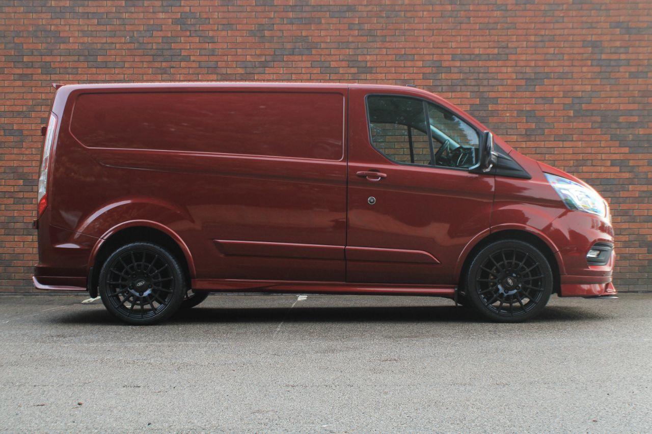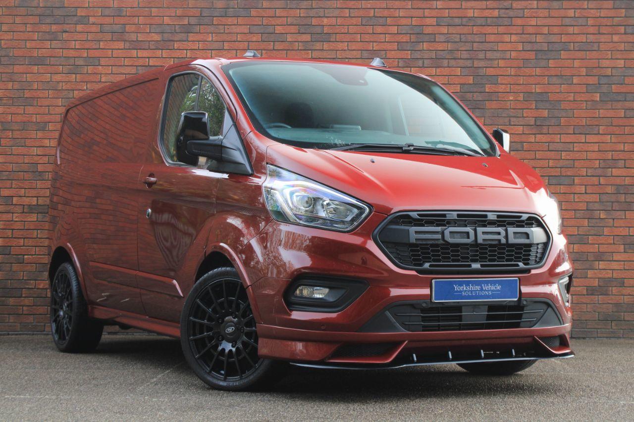 Finished in metallic red with full black cloth interior. Features include Apple CarPlay and Android Auto, front splitter and rear spoiler, rear diffuser with quad exhaust tips, 20” multispoke alloy wheels in black, front and rear park distance control, heated seats, air conditioning, Bluetooth connectivity with media streaming, DAB digital radio, automatic headlights, cruise control, drive modes, heated fronted windscreen, electric folding exterior mirrors, sliding nearside rear door, voice control, multifunctional leather steering wheel, 6 speed manual transmission plus much more standard specification. This Transit Custom is offered in excellent condition having covered 39100 miles from new by its 1 owner. The van comes complete with a full service history consisting of the following 11/10/2022 at 15002 miles, 19/07/2024, and 20/10/2025 at 38966 miles. Plus VAT.