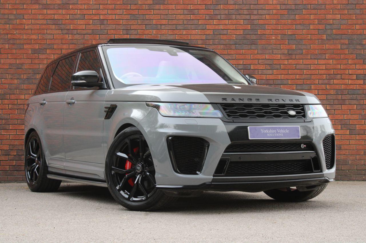 Finished in a Nardo Grey wrap (Indus Silver metallic original) with ebony & cirrus perforated Windsor leather interior. Features include 22” five split spoke ‘style 5083’ alloy wheels finished in gloss black, sliding panoramic glass sunroof with powered sunblind, carbon fibre effect wrapped bonnet, interactive drivers display, Apple CarPlay and Android Auto, Touch Pro Duo with navigation, heated steering wheel, 360-degree parking aid with rear view camera, SVR performance seats with memory function, digital three zone climate control with automatic air conditioning, heated front and outer rear seats, Meridian 825W surround sound system, Bluetooth connectivity with media streaming, DAB digital radio, Pixel LED headlights with signature daytime running lights, rain sensor, adaptive cruise control, terrain response 2 with dynamic program, switchable active exhaust, traffic sign recognition, blind spot assist, heated front windscreen, electric folding exterior mirrors, privacy glass, keyless entry, interior ambient lighting, extended satin brushed aluminium interior trim finisher, cirrus suede cloth headlining, front centre console drinks cooler compartment, red SV painted brake calipers, fixed side steps, Narvik Black contrast roof, voice control, electric tailgate, multifunctional leather steering wheel with paddleshift, automatic transmission plus much more standard specification. This Range Rover Sport P575 SVR is offered in excellent condition having covered 82100 miles from new. The car comes complete with a Land Rover main dealer service history consisting of the following - 15/05/2020 at 3567 miles, 29/05/2021 at 16915 miles, 07/06/2022 at 34431 miles and 07/07/2023 at 52916 miles.