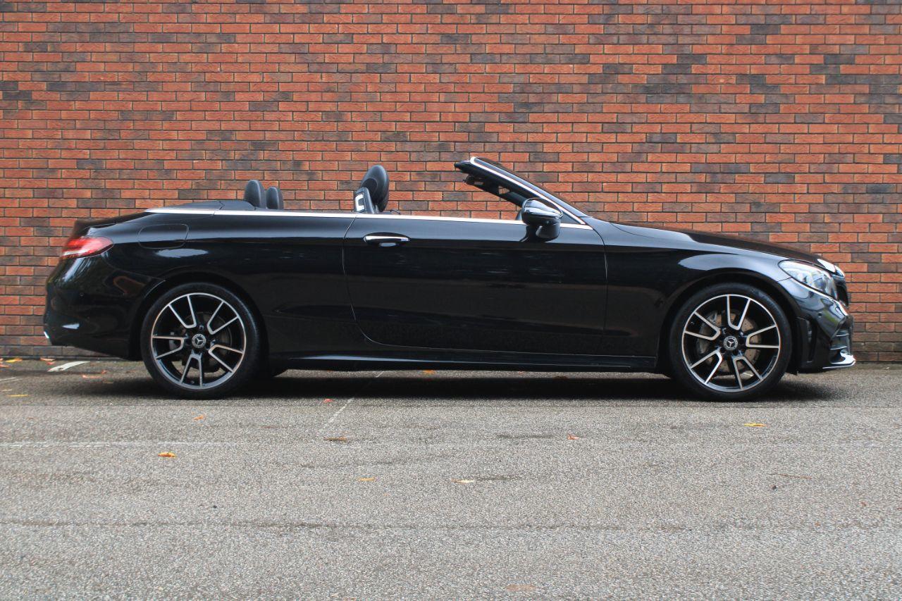Finished in Obsidian Black metallic with black leather and dinamica interior. Features include Air Scarf neck-level heating system, Air Cap wind deflector and draught stop, 19” AMG five twin spoke alloy wheels, 12.3” digital instrument cluster, Apple CarPlay and Android Auto, satellite navigation, Burmester surround sound system, 360 degree park distance control with 360 degree cameras, heated front sport seats with electric adjustment, digital dual zone climate control with automatic air conditioning, Bluetooth connectivity with media streaming, DAB digital radio, Multibeam LED headlights, rain sensor, cruise control, dynamic select with agility control sports suspension, traffic sign assist, brake assist, attention assist, electric folding exterior mirrors, keyless go comfort package, wireless phone charging, ambient lighting, brushed aluminium door trims, illuminated Mercedes door sills, voice control, multifunctional leather steering wheel with paddleshift, automatic transmission plus much more standard specification. This C200 Cabriolet (Premium Plus) is offered in excellent condition having covered 48700 miles from new. The car comes complete with a service history consisting of the following 21/09/2020 at 2608 miles, 16/03/2023 at 30053 miles and 24/04/2025 at 44779 miles.