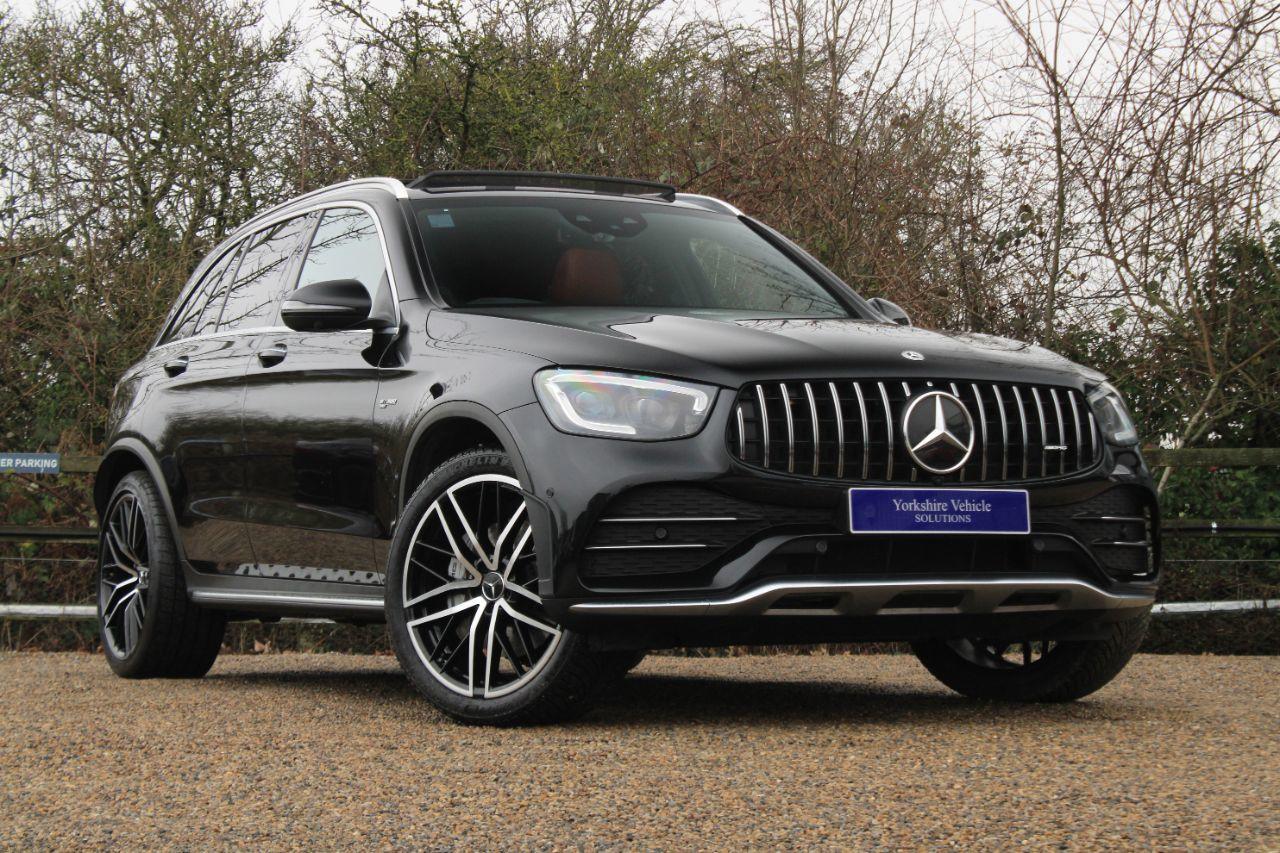 Finished in Obsidian Black metallic with Cranberry red and black leather interior. Features include sliding panoramic glass sunroof with powered sunblind, Burmester surround sound system, AMG specific digital drivers display, Apple CarPlay and Android Auto, MBUX satellite navigation, 21” AMG five twin spoke design alloy wheels painted black with high sheen finish, parking package with 360-degree cameras, heated front sport seats with memory package, digital dual zone climate control with automatic air conditioning, bluetooth connectivity with media streaming, DAB digital radio, Multibeam LED headlights, rain sensor, cruise control, AMG ride control air suspension with dynamic select, AMG rear-axle limited-slip differential, AMG performance exhaust system, traffic sign assist, electric folding exterior mirrors, rear privacy glass, keyless go comfort package, interior ambient lighting, wireless charging, black ash wood interior trim, illuminated AMG door sills, running boards, roof rails, voice control, electric tailgate, multifunctional AMG leather steering wheel with paddleshift, automatic transmission plus much more standard specification. This GLC43 AMG (Premium Plus) is offered in excellent condition having covered only 27300 miles from new by its 1 former keeper. The car comes complete with a full Mercedes and specialist service history consisting of the following - 05/01/2021 at 3412 miles, 05/01/2022 at 7407 miles, 29/12/2022 at 11086 miles, 21/12/2023 at 14804 miles and 24/01/2025 at 20378 miles.