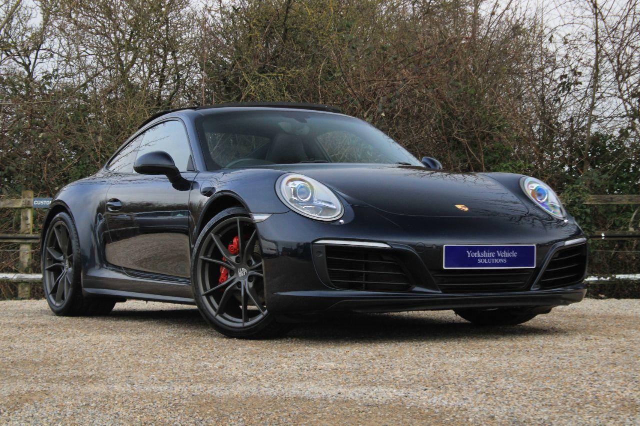 Finished in Night Blue metallic (£801) with full black leather interior. Features include electric tilt and slide glass sunroof (£1530), 14-way electric front sport seats with driver memory package (£1538), 20” Carrera S alloy wheels (£971), front and rear park assist with reversing camera (£1085), heated front seats (£320), Apple CarPlay, PCM including navigation module, digital dual zone climate control with automatic air conditioning, bluetooth connectivity with media streaming, DAB digital radio, automatic bi-xenon headlights with LED daytime running lights, cruise control (£219), power steering plus (£179), Porsche Active Suspension Management with ride height lowered by 10mm, sport button, electric folding exterior mirrors (£203), Morel Maximo Ultra 603 MkII sound system with Helix V eight amp, roof lining in alcantara, LED tail lights, auto-deployable rear spoiler, red brake calipers, passenger footwell storage net, leather steering wheel with paddleshift, automatic PDK transmission plus much more standard specification. This 991.2 911 Carrera 4 has £6,846 worth of factory fitted options and is offered in excellent condition having covered 73200 miles from new. The car comes complete with a Porsche main dealer and specialist service history consisting of the following – 30/06/18 at 12210 miles, 14/07/20 at 27017 miles, 21/11/22 at 39983 miles and 07/01/26 at 71714 miles.