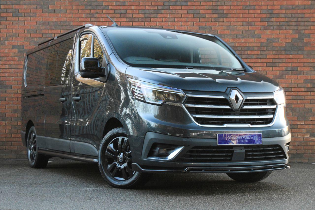 Finished in Slate Grey with full black Java cloth interior. Features include Apple CarPlay and Android Auto, R Link satellite navigation, front splitter and rear spoiler in gloss black, second row seating (6 seats), 17” alloy wheels in black, rear park distance control, air conditioning, Bluetooth connectivity with media streaming, DAB digital radio, automatic LED pure vision headlights with LED daytime running lights, rain sensor, cruise control, electrically adjustable exterior mirrors, tinted windows, black titanium horizontal interior trim, driver’s armrest, roof rails, multifunctional premium faux leather steering wheel, 6 speed manual transmission plus much more standard specification. This Trafic is offered in excellent condition having covered 43500 miles from new by its 1 owner. The van comes complete with a service history consisting of the following 16/07/2023 at 16523 miles and 26/11/2025 at 43080 miles. Plus VAT.