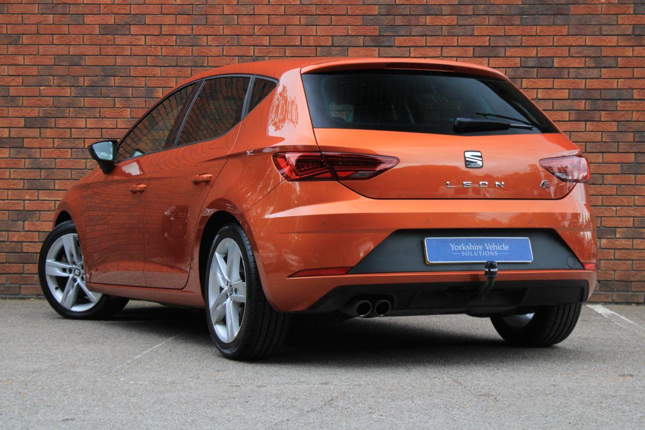 Finished in Eclipse Orange metallic with full black techny cloth interior. Features include Apple CarPlay and Android Auto, 17” five spoke alloy wheels, front and rear park distance control, front sport seats, digital dual zone climate control with automatic air conditioning, Bluetooth connectivity with media streaming, DAB digital radio, automatic LED headlights, rain sensor, cruise control, lowered sports suspension, SEAT drive profile, heated electric folding exterior mirrors, tinted rear glass, detachable tow bar, voice control, multifunctional FR leather steering wheel with paddleshift, automatic transmission plus much more standard specification. This Leon FR is offered in excellent condition having covered 62700 miles from new by its 1 former keeper. The car comes complete with a full service history consisting of the following 13/01/2021 at 12828 miles, 06/06/2022 at 20309 miles, 13/01/2023 at 27618 miles, 30/01/2024 at 40707 miles and 04/02/2025 miles.