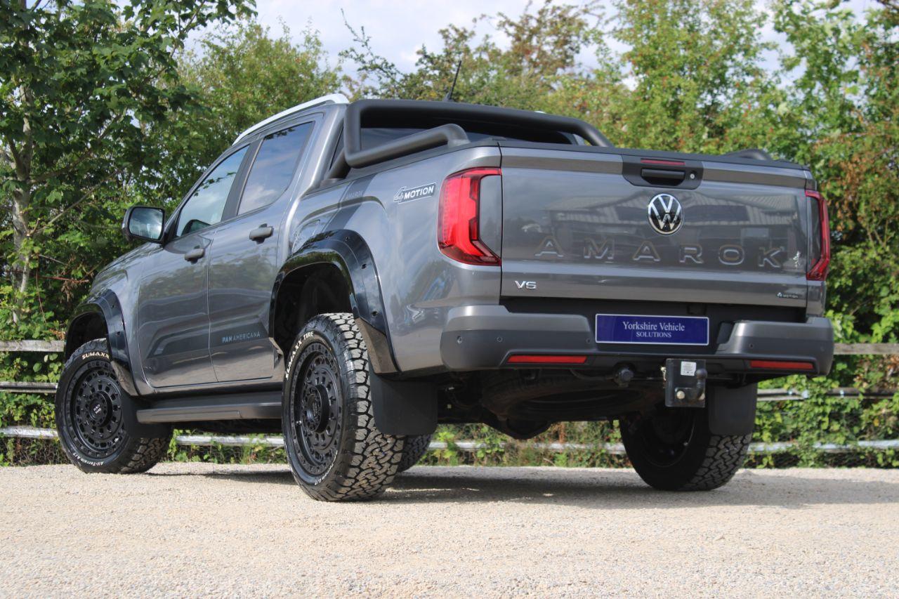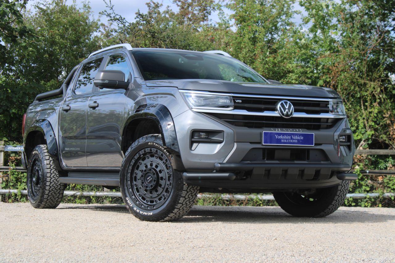 Finished in Dark Grey metallic with black cricket leather interior. Features include digital drivers display, 12” infotainment system with satellite navigation, Apple CarPlay and Android Auto, Harman Kardon surround sound system, Storm wheel arch extensions in gloss black, EGR RollTrac electric shutter, 20” Black Bear alloy wheels finished in matt black, front and rear park distance control with 360-degree cameras, heated electric front seats, digital dual zone climate control with automatic air conditioning, bluetooth connectivity with media streaming, DAB digital radio, IQ Light Matrix LED headlights, rain sensor, adaptive cruise control, lane keeping system with side assist, rear differential lock, comfort suspension, heated electric folding exterior mirrors, rear privacy glass, keyless start, wireless phone charging, tow bar, matt black styling bar, side steps in black, all-terrain tyres, underride front guard, voice control, multifunctional leather steering wheel, automatic transmission plus much more standard specification. This highly specified Amarok PanAmericana is offered in excellent condition having covered 16400 miles from new by its 1 owner. Car comes complete with a full VW service history and the reassurance of a remaining manufacturers warranty until December 2026. PLUS VAT.
