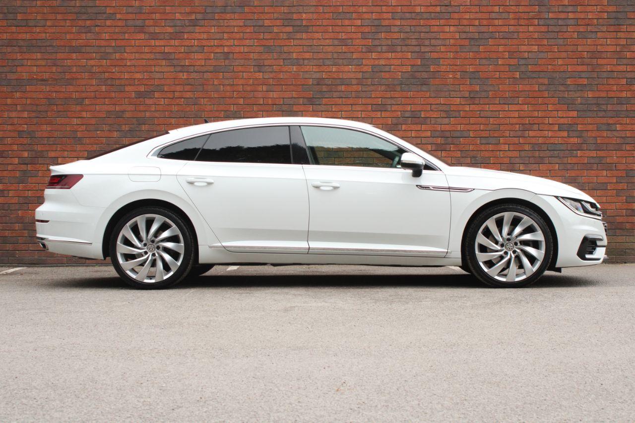 Finished in Pure White with full black carbon optic Nappa leather interior. Features include 20” Rosario alloy wheels, digital driver’s display, Apple CarPlay and Android Auto, Discover satellite navigation, front and rear park distance control, heated front seats with driver ergo Comfort function, digital dual zone climate control with automatic air conditioning, Bluetooth connectivity with media streaming, DAB digital radio, automatic LED headlights, rain sensor, adaptive cruise control, dynamic chassis control with drive mode selection, dynamic road sign display, lane assist, front assist, heated electric folding exterior mirrors, rear privacy glass, keyless start, dynamic rear indicators, silver rise decorative inserts, voice control, multifunctional leather steering wheel with paddleshift, automatic DSG transmission plus much more standard specification. This Arteon 4Motion is offered in excellent condition having covered only 33500 miles from new by its 1 former keeper. The car comes complete with a service history.