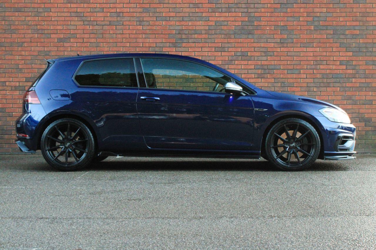 Finished in Atlantic Blue metallic with titan black race cloth and art velour interior. Features include Maxton Design front splitter, side skirts and rear spoiler, rear diffuser in gloss black, digital driver’s display, Apple CarPlay and Android Auto, Discover satellite navigation, 19” Bola five twin spoke alloy wheels finished in black, front and rear park distance control, heated front sport seats, digital dual zone climate control with automatic air conditioning, Bluetooth connectivity with media streaming, DAB digital radio, automatic LED headlights with dynamic curve light, rain sensor, adaptive cruise control, front assist, selectable drive modes, heated electric folding exterior mirrors, tinted rear glass, dynamic rear indicators, voice control, multifunctional leather steering wheel, 6 speed manual transmission plus much more standard specification. This Golf R is offered in excellent condition having covered 61400 miles from new by its 1 former keeper. The car comes complete with a full Volkswagen main dealer service history consisting of the following 21/11/2019 at 6445 miles, 27/11/2020 at 13418 miles, 26/10/2021 at 20195 miles, 15/10/2022 at 28165 miles, 09/10/2023 at 37020 miles, 14/09/2024 at 46850 miles and 17/07/2025 at 56550 miles.